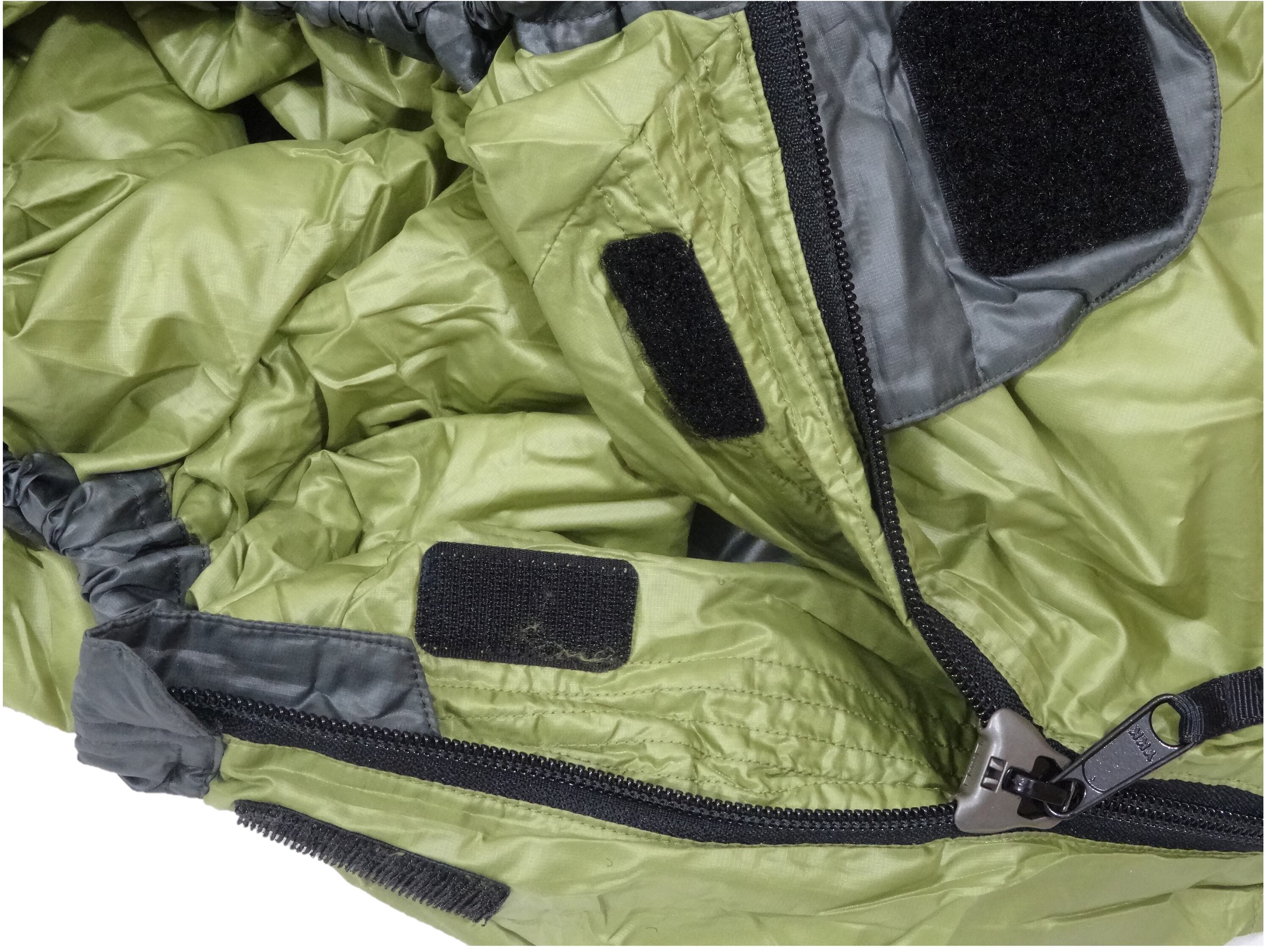 ファスナーには足元からも開閉出来る温度調節の容易なYKK製260cmのコイルファスナーを使用しています。ファスナー噛み込み軽減パーツも採用しています。